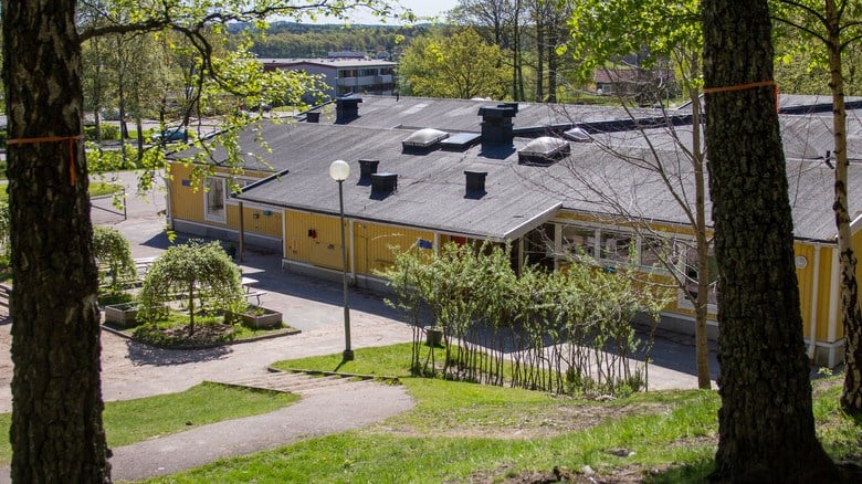 Den stora gården lockar till spännande lekar. Här leker barnen på en stor naturtomt med träd och bärbuskar. Det finns lekställningar, gungor, sandlådor och asfalt där barnen kan cykla.