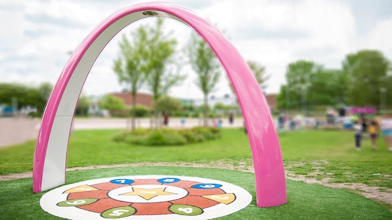 Sona reagerar på rörelser och ljud. En kamera högst upp i bågen registrerar dina rörelser på den specialdesignade konstgräsmattan under fötterna.