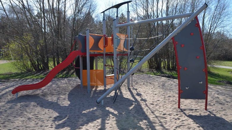 I naturnära Ulvegärde hittar du en lekplats med rum för både bollsport och ensamlek.