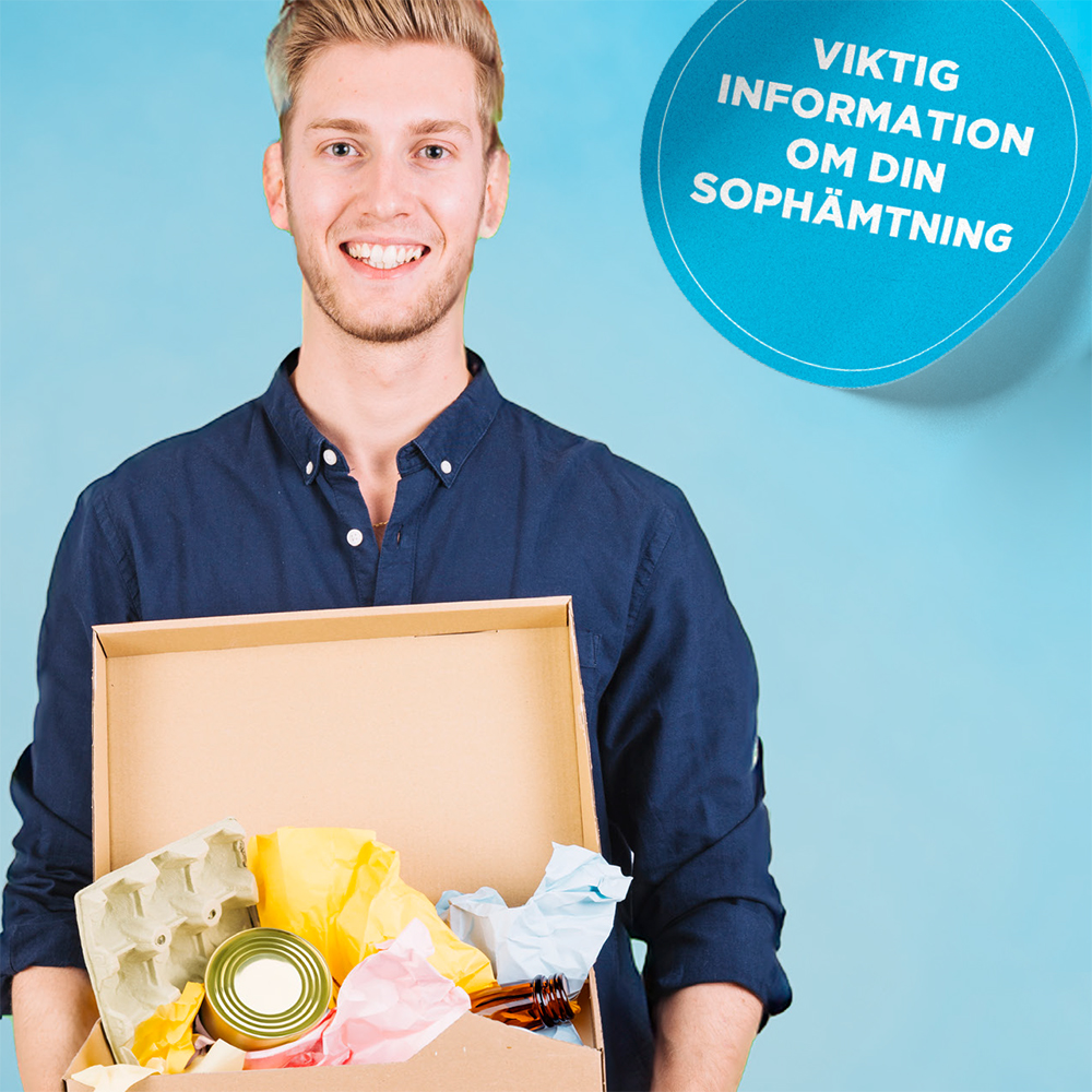 - Använd endast förpackningskärl till avfall som ska sorteras som förpackningar. Krossat glas, metallskrot och elektronik är exempel på avfall som istället ska lämnas på återvinningscentral. Använd sorteringsguiden om du är osäker på hur något ska sorteras.