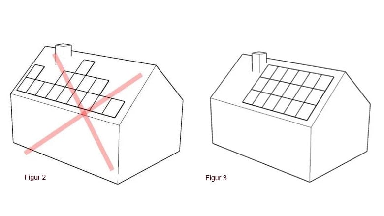 Figur 2 Undvik allt för uppdelade block av solpaneler.