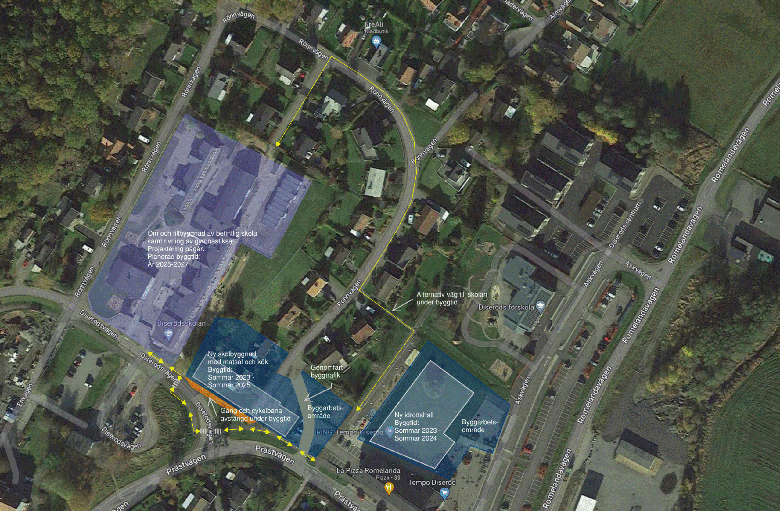 - Fas 3, Skolgården byggs om och en ny hämta-lämnaslinga anläggs. Modulbyggnad avetableras.