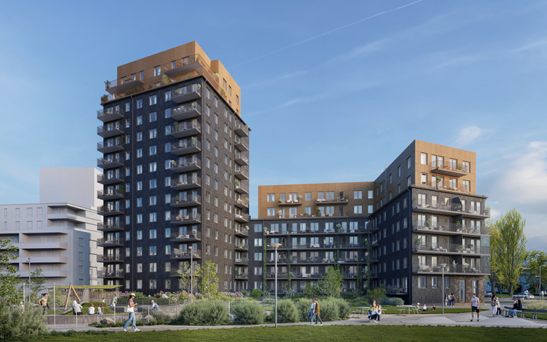 - Kvarter 3: Riksbyggen bygger 60 lägenheter i bostadsrättsform. Planerad inflyttning i början av 2027.