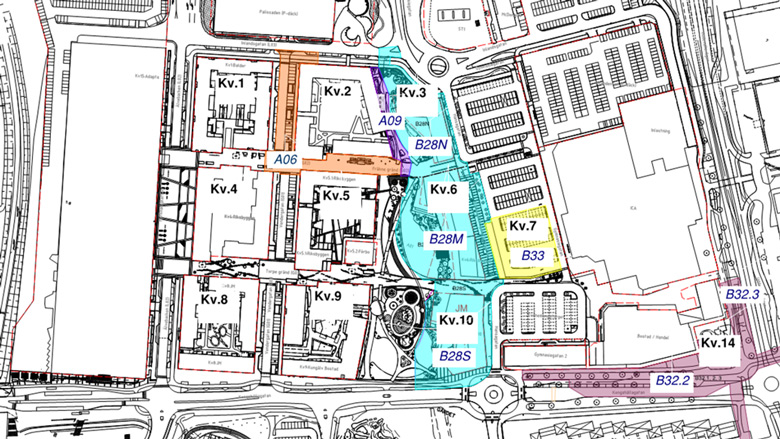 Närmast fortsätter arbetena på kvarteren 3, 10, 14 och 7, se karta längre ner på sidan eller vår interaktiva 3D-modell.