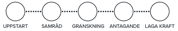 Att ta fram en ny eller ändrad detaljplan är en process som styrs i Plan- och bygglagen. Processen innehåller ett antal steg för att kommunen ska pröva om marken är lämplig att använda på det sätt som detaljplanen föreslår. Under detaljplaneprocessen finns flera tillfällen för myndigheter, sakägare och andra berörda att granska och lämna in synpunkter på förslaget. Nedan kan du läsa mer om de olika stegen i detaljplaneprocessen. Du kan även läsa mer om detaljplaner och arbetet med att ta fram dem i Boverkets Kunskapsbank.