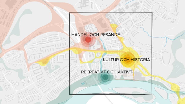 Detta område ligger nära resecentrum och motorvägsmotet, vilket gör det lättillgängligt för både invånare och besökare. Här prioriterar vi att lokalisera arbetsplatser, service och bostäder för att underlätta smidiga vardagsresor och främja handel. Utvecklingsmöjligheter i detta område finns främst inom Oasenområdet och Komarken.