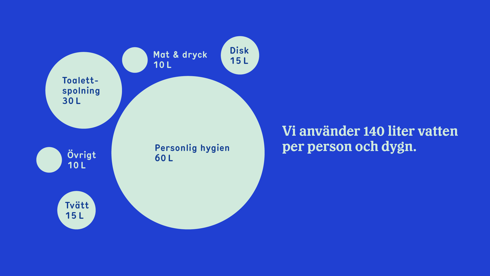 en person använder i genomsnitt 140 liter vatten per dygn!