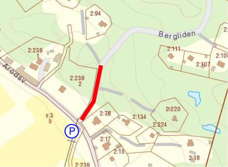 Entreprenören kommer göra det möjligt att gå förbi arbetet och anlägger en tillfällig parkering där du kan parkera nedanför Hobbyvägen på Norra Arödsvägen. På bilden kan du se en karta över vart den tillfälliga parkeringen ligger markerat med et "P".