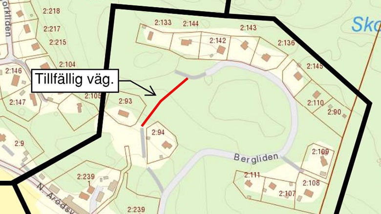 Med start onsdag 25 augusti kommer entreprenören att behöva utföra arbeten längst ned på Bergliden och framkomlighet med bil kommer då inte vara möjlig under arbetsdagen. Efter arbetsdagens slut, klockan 16:30, täcks schakt över och vägen blir åter körbar. Sedan öppnas schakten igen nästa dag när arbetena återupptas klocka 07:30. Under denna tid kommer det finnas parkeringsmöjligheter nedanför Bergliden enligt bilden nedan.