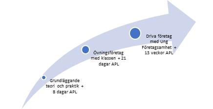 - Skolförlagd utbildning med 20 veckors praktik och fokus på småföretagande.