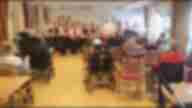 På övre bilden ses sånggruppen Humlan spela och sjunga för de boende på Ranrikegården.