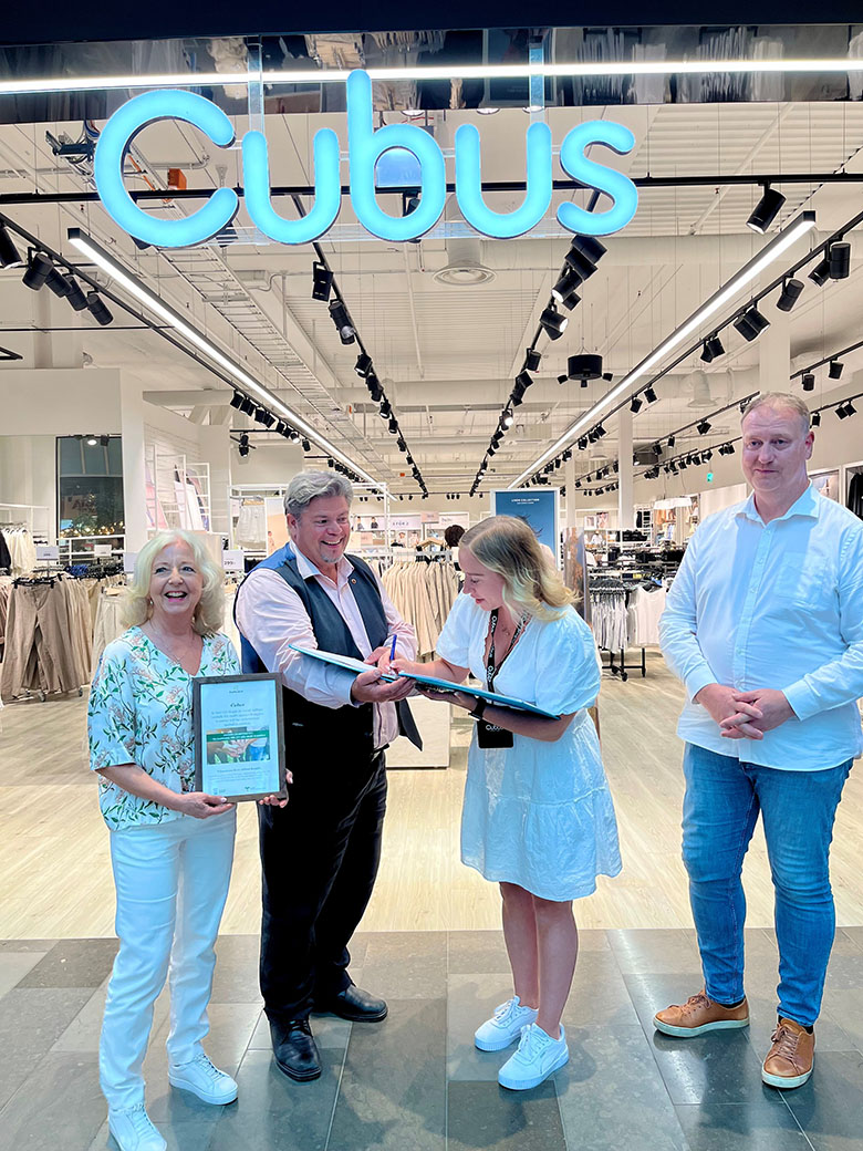 Tillsammans med butikschef Emilia Jantunen tecknade kommunen och Cubus sig för samhällskontraktet.