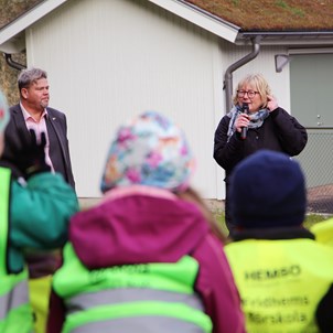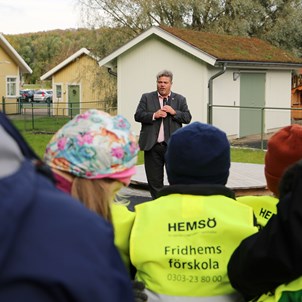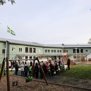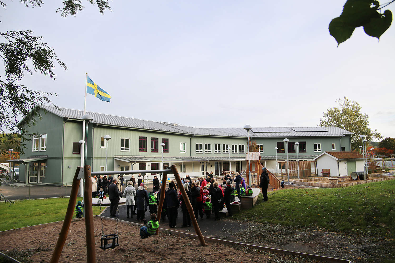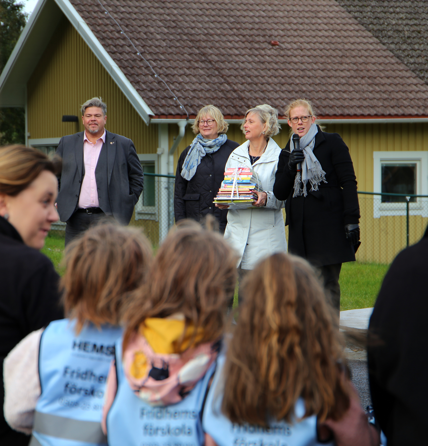 Ute på gården vid Fridhems förskola samlades barn och vuxna i den friska oktoberluften under tisdagen för att officiellt inviga förskolans nya huvudbyggnad. Bandet klipptes under högtidliga former av Miguel Odhner (S), kommunstyrelsens ordförande och Anna Vedin (M), ordförande i utskottet för bildning och lärande. Förskolan invigdes också med dans som bjöd in både barn och vuxen för att sen avslutas med glass och fruktdricka till barnen.