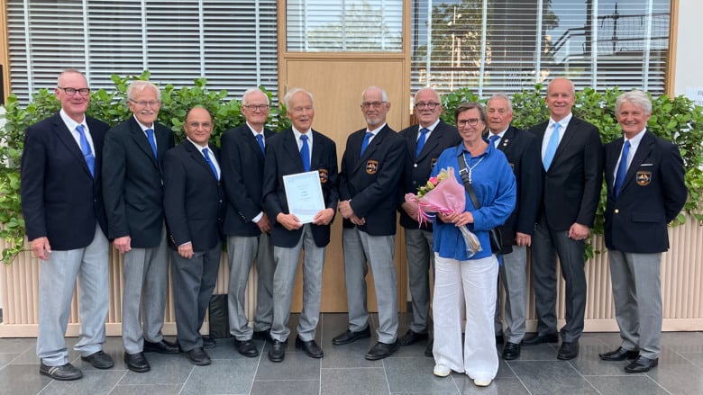Kungälvs Manskör fyller 100 år. Med på bilden: Robert Oskarsson, Lena-Maria Vinberg, Fayaz Shahab, Sven Jansson, Lars Strandqvist, Lars-Olov Lindblad, Christer Hansson, Bengt Olsson, Jan-Erik Karlsson, Bo Carlsson och Staffan Fägerlind