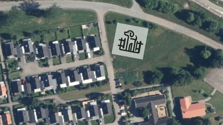 På tomten mellan Utmarksvägen och Blåmesens förskola bygger vi nu en tillfällig hundpark.