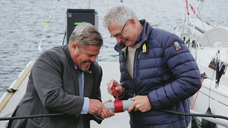 Nu är den nya snabbladdaren för elbåtar på plats i Marstrands gästhamn. Snabbladdaren invigdes den 23 maj av kommunstyrelsens ordförande Miguel Odhner (S) tillsammans med Marstrands hamnchef Peter Alexandersson.