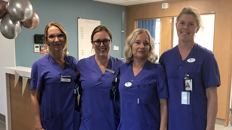 Några av personalen på nya korttidsenheten, Caroline, Clara, Sandra och Maria. Nedan: Christina.