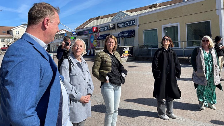 På bilden ses representanter från kommunen och Majblomman som undertecknade samhällskontraktet i samband med att försäljningen drog igång 18 april på Vita Fläcken i Kungälv.