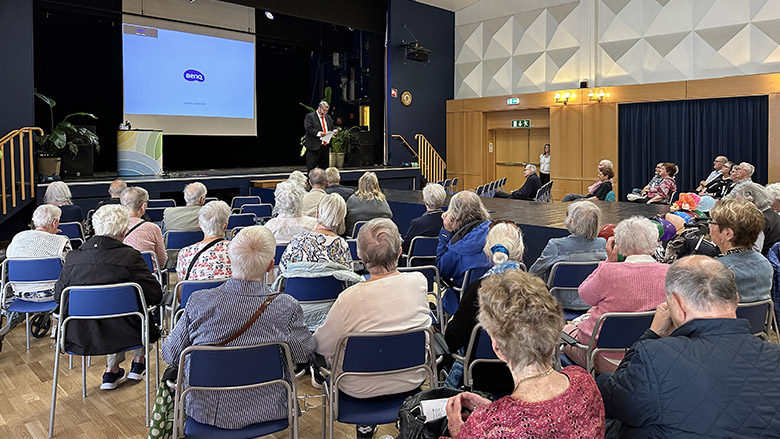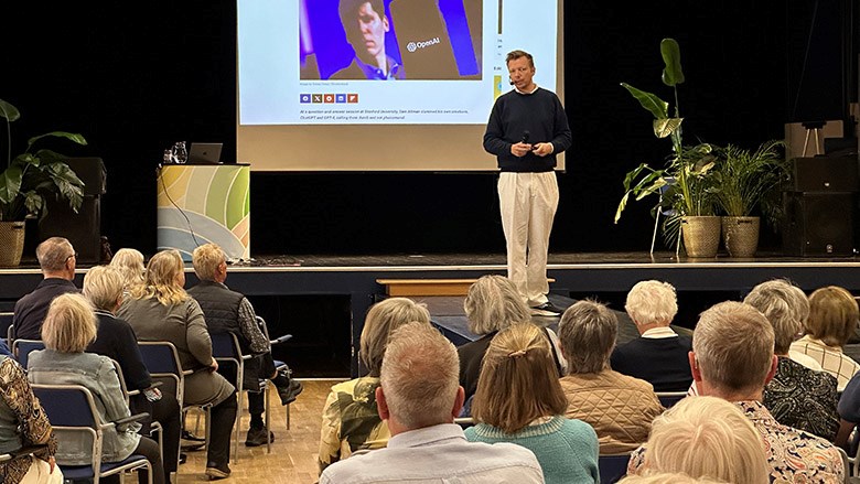 Miguel Odhner (S), ordförande i rådet för Folkhälsa och Social Hållbarhet invigde dagen med ett tal. Årets tema var AI, ett ämne som både skapar nyfikenhet och väcker en del rädsla. Föreläsaren Emanuel Karlsten guidade publiken genom de stora framsteg som gjorts inom AI på bara några år och visade imponerande exempel på hur bra tekniken har blivit. Han bjöd bland annat besökarna på ett litet hyllningstal till Kungälv från Ulf Kristersson, ett tal där statsministern utlovade fördubblad pension till alla Kungälvs seniorer, något som fick publiken att brista ut i skratt. Talet var självklart AI-genererat och visar på vikten av källkritik när AI gör det allt svårare att avgöra vad som är på riktigt och inte.