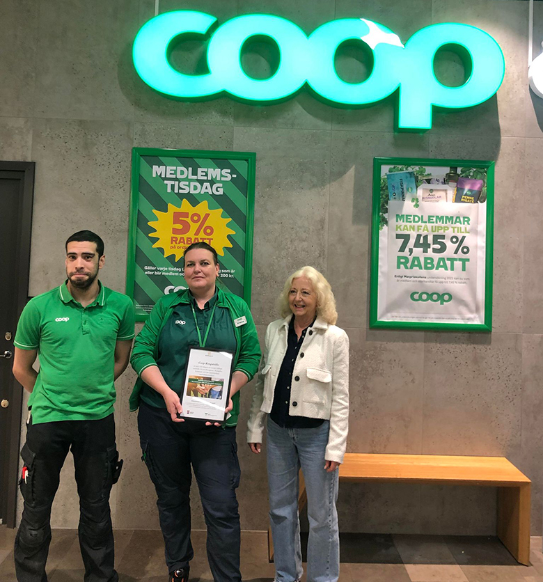 På bilden ses Gun-Marie Daun, kommunstyrelsens 2:e vice ordförande sam Johanna Järnros och Robin Höglund Coop Kongahällacenter.