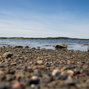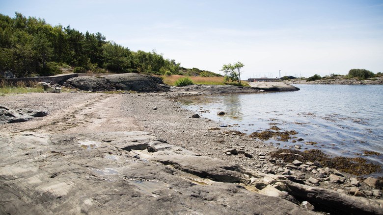 Kör väg 168 mot Marstrand. Efter 19 kilometer kommer du till Nordöns småbåtshamn, badplatsen ligger på området. Kör igenom området, ta vänster över bergknallen och kör så långt du kan komma.