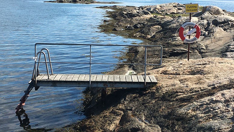 Badplatsen är inte tillgänglighetsanpassad. Det är klippor ut till badstegarna, som försvårar tillgängligheten.