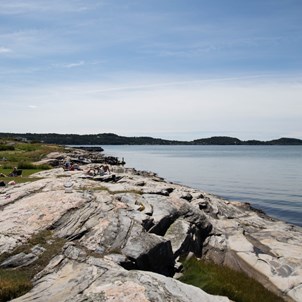 På denna badplats finns det många klippor att ligga på, några badstegar, brygga, bänk och toaletter. Hundar är inte tilllåtna på våra kommunala badplatser.