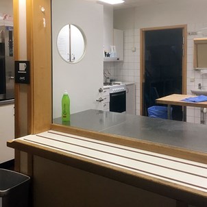 Den lilla salen är 98 kvadratmeter och har en fast möblering som rymmer 50 personer. Den har även en scen som är 10,5 kvadratmeter. Kök finns och är gratis att hyra men ingår inte automatiskt vid en bokning. Du behöver specifikt uppge att du även önskar boka köket.