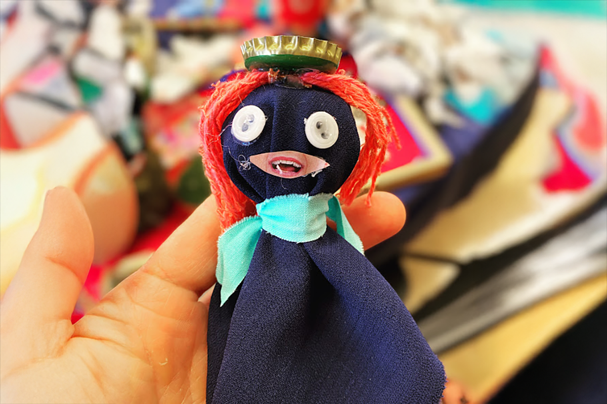 I ateljén dukar vi upp ett stort skaparbord fullt av material och idéer att inspireras av.