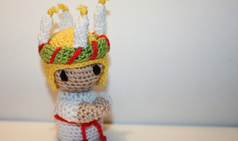 Luciatåg i Mimers kulturhus med elever från Trekungagymnasiet.