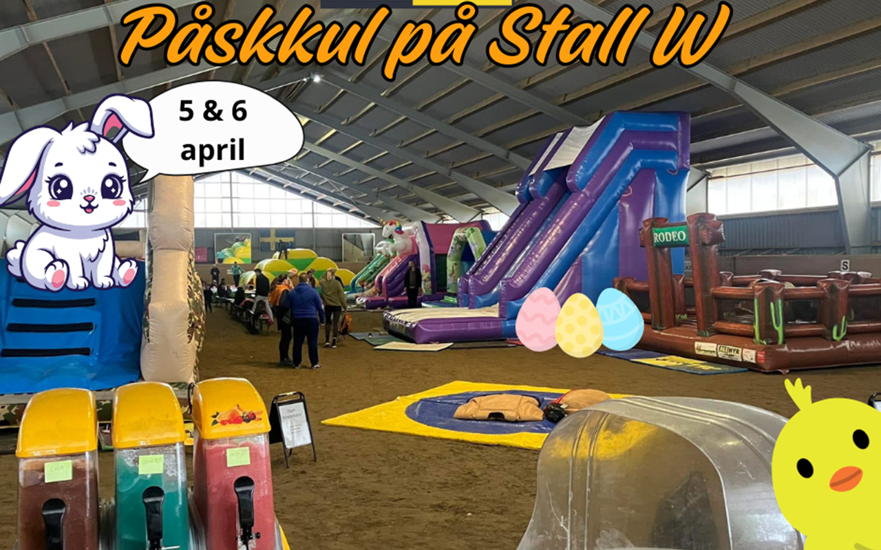Påskkul på Stall W! Hoppa i hoppborgar, åk rutschkana, spela spel, träffa bondens djur och kika på maskinerna. Ansiktsmålning finns på plats och det går att köpa fika och mat.