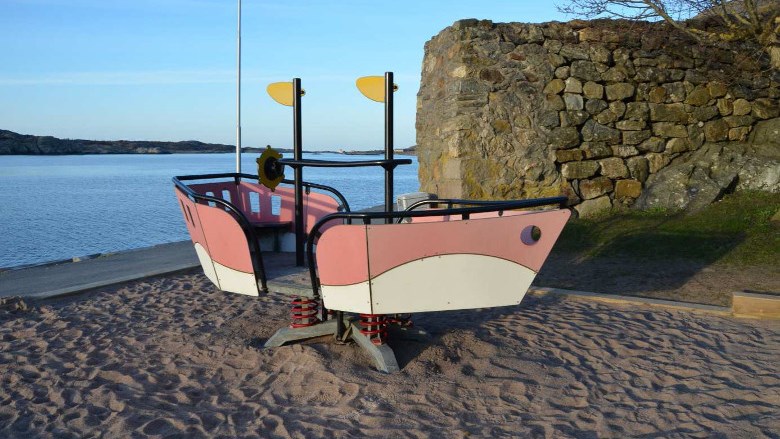 På barnbadet hittar du en liten lekplats med havsutsikt.