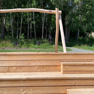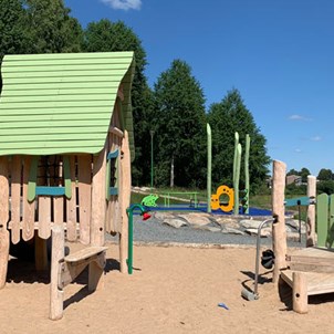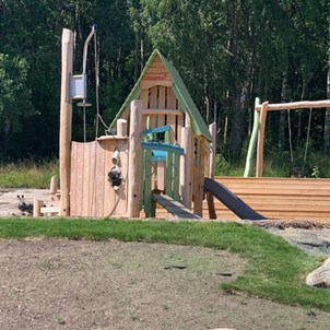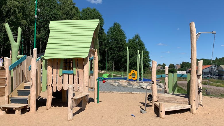 Temat för lekplatsen är ” Liten som en insekt” där designen tagit intryck av närheten till naturen. Lekplatsen består av flera ytor med olika redskap som erbjuder olika sorters lek. Här finns gott om plats för att umgås och äta picknick. Det finns även grillplats en bit bort.