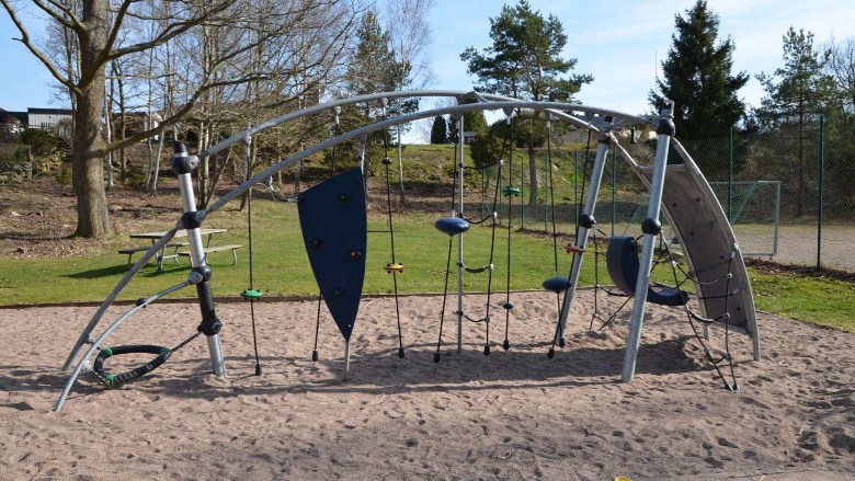 Vid Solskiftegatan hittar du en lekplats med utrymme för många olika aktiviteter.