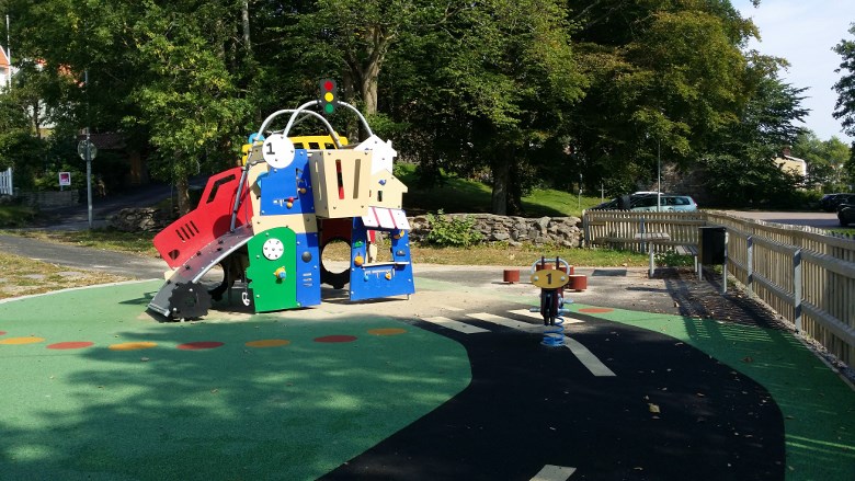 I Thorilds gränd, bakom Kungälvs kyrka i Kungälv, finns en lekplats som har tema trafik.
