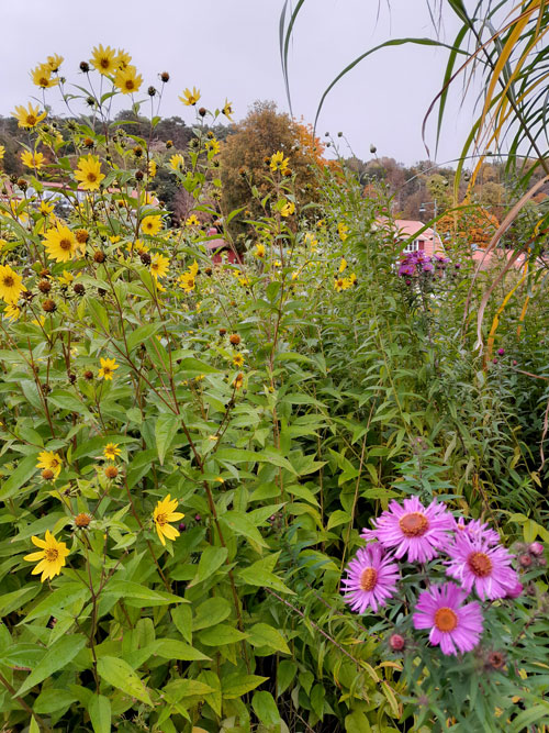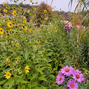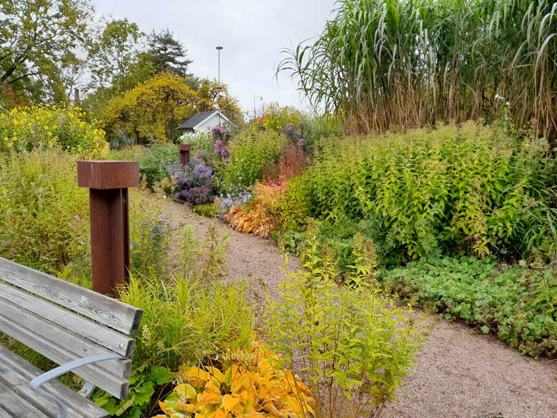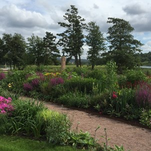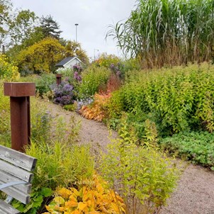 Här finns en 650 kvadratmeter perennplanteringar, bland annat en mycket stor samling höstflox. Sjuttio sorter blommar från juli till sen höst.