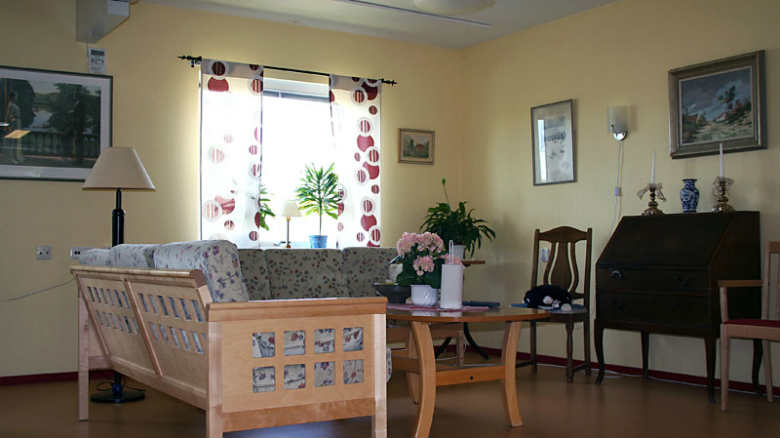 På födelsedagar eller vid andra tillfällen när den egna lägenheten inte räcker till finns en lokal att tillgå som bokas på boendet).